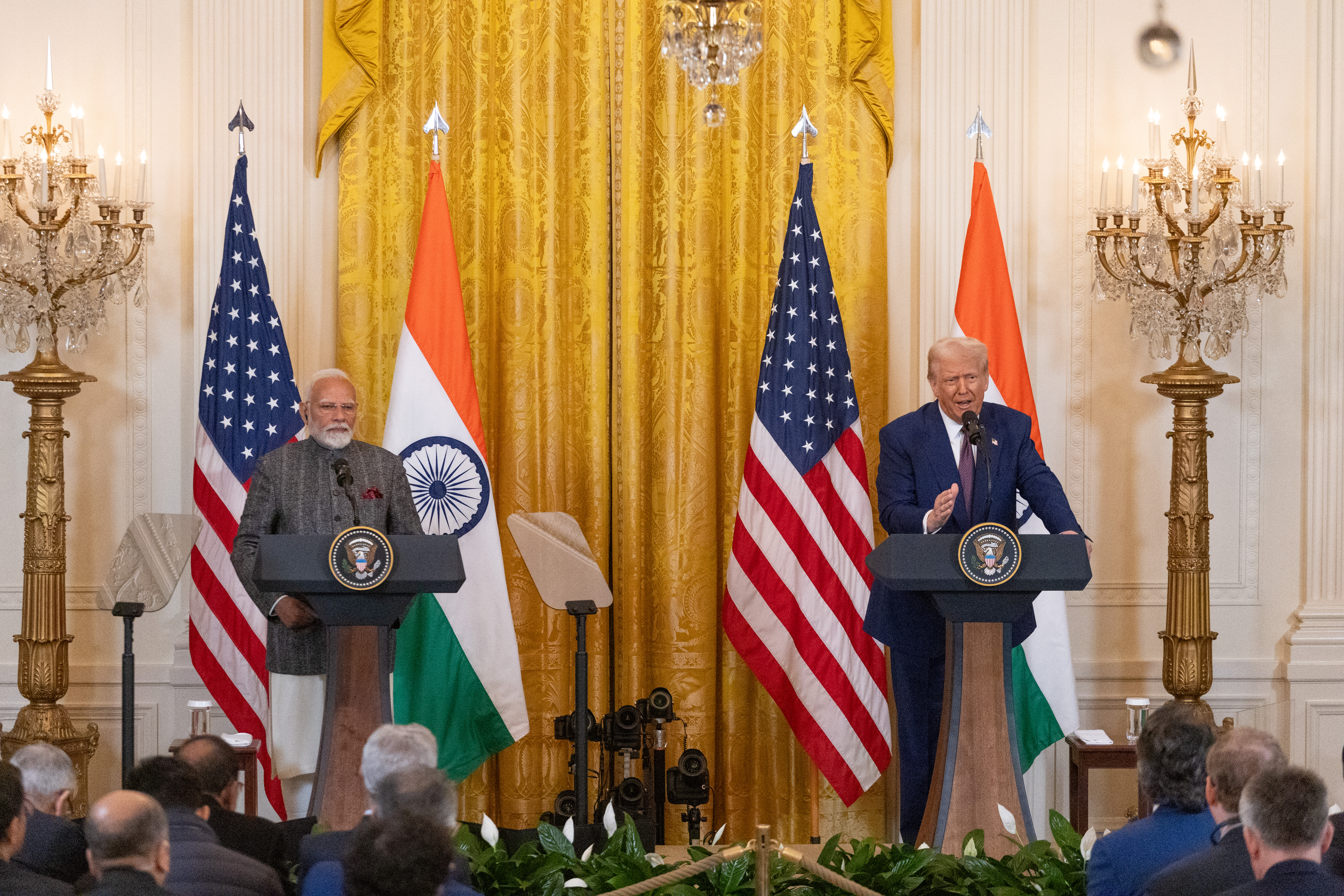 2月13日,美国总统特朗普(右)与到访的印度总理莫迪在华盛顿白宫出席联合记者会。新华社记者胡友松摄